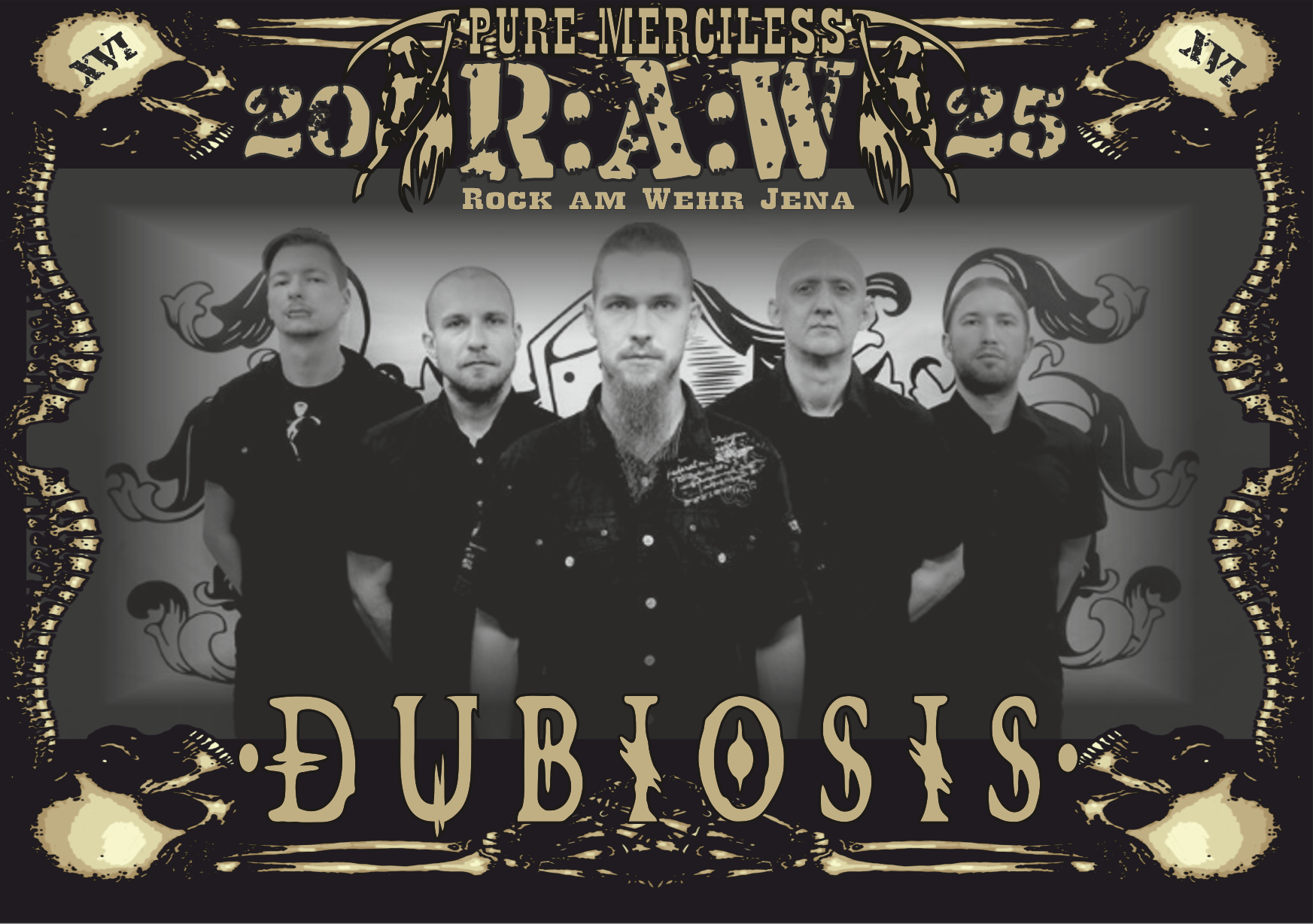 25 Jahre fiesen Death Metal mit deutschen Texten haben DUBIOSIS im Gepäck. Im Jahre 2000 gegründet, blasen die Jungs dem potentiellen Fan eine gewaltige Portion Todesblei um die Ohren.